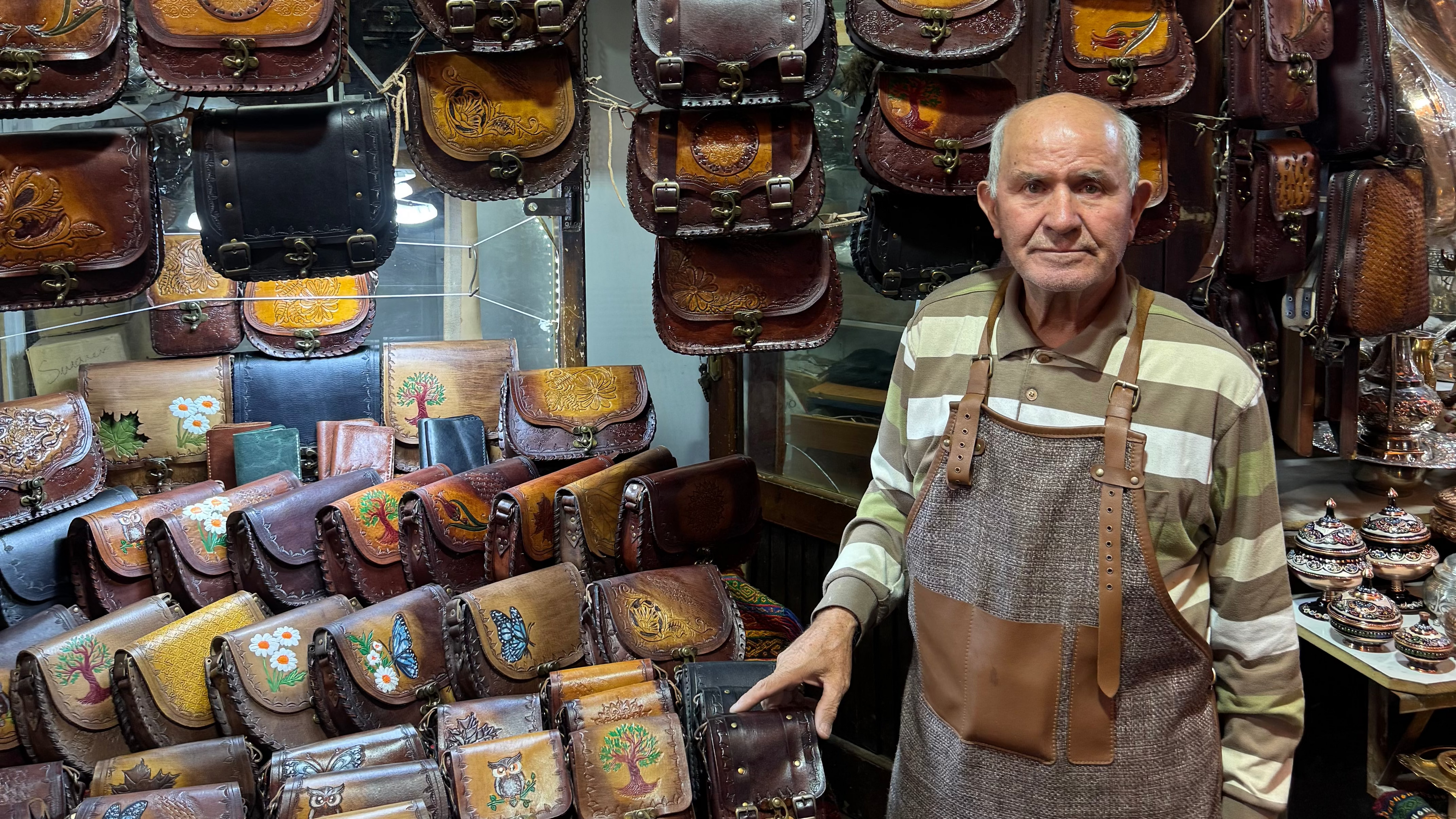 Tahir Usta'nın çantaları eskimez, yaş alır.